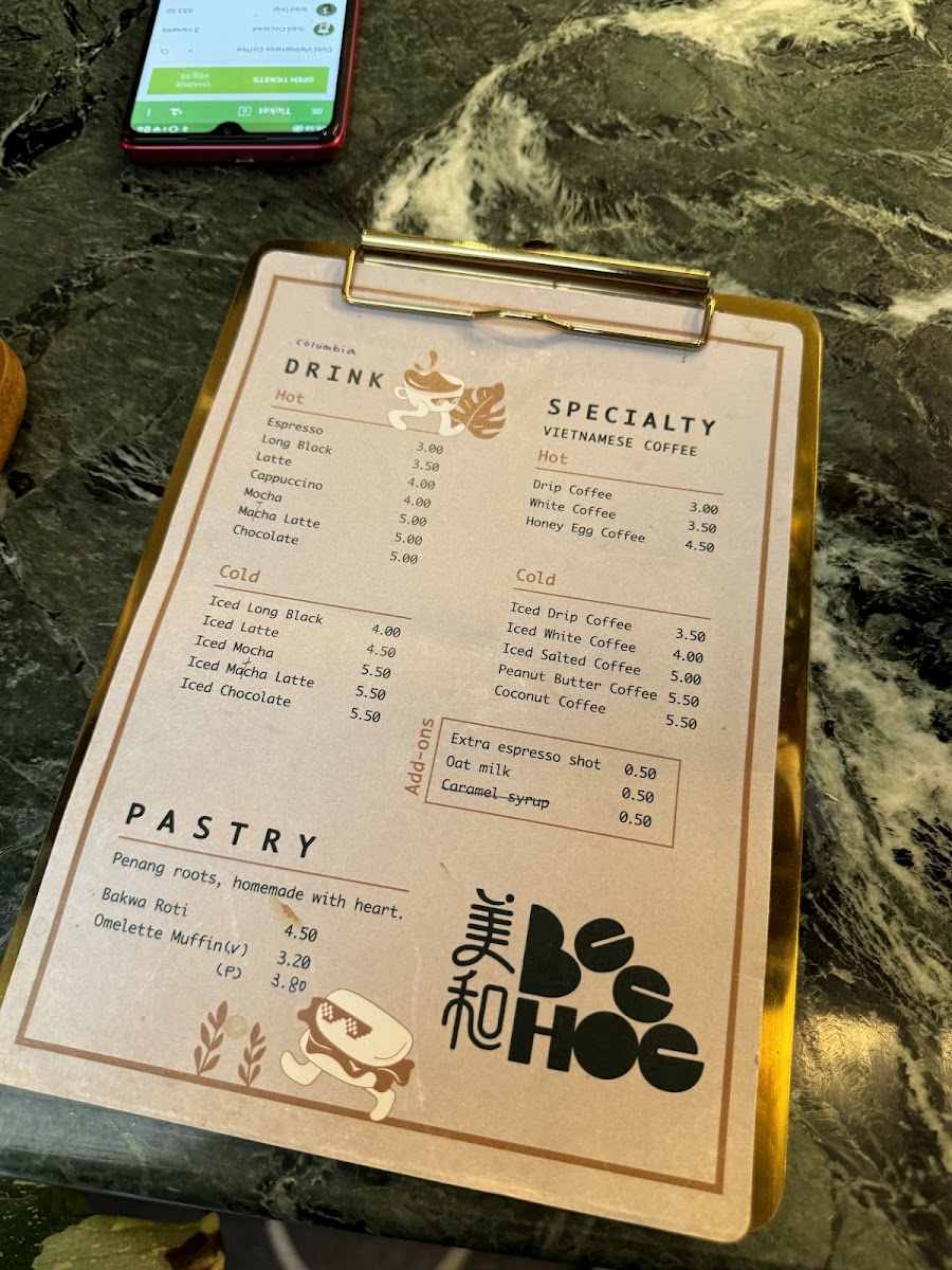 Bee Hoe Coffee Menu